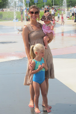 We went to play in the water fountains today. Neither one of the girls liked it at first, but the warmed up and had a great time!